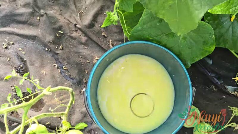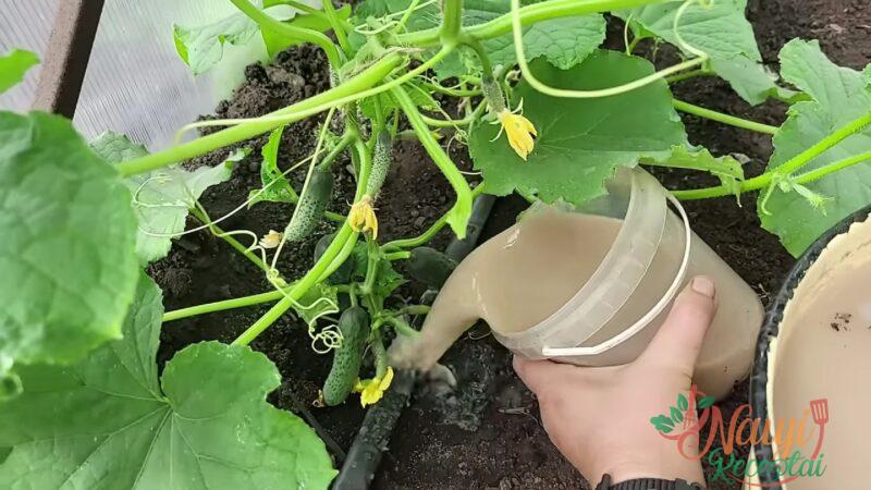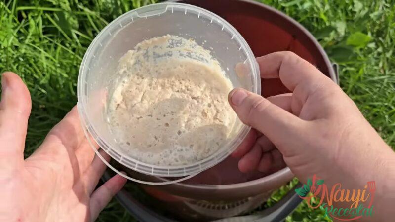 Pirmiausia reikia paruošti mielių užpilą. Norėdami tai padaryti, mielių pakelį supilkite į stiklinę šilto vandens, įberkite 2 šaukštus cukraus ir stiklinę pieno. Palikite mišinį 30 minučių. Gautą užpilą įpilkite į 10 litrų vandens. Norėdami padidinti šėrimo efektyvumą, įpilkite huminių rūgščių.