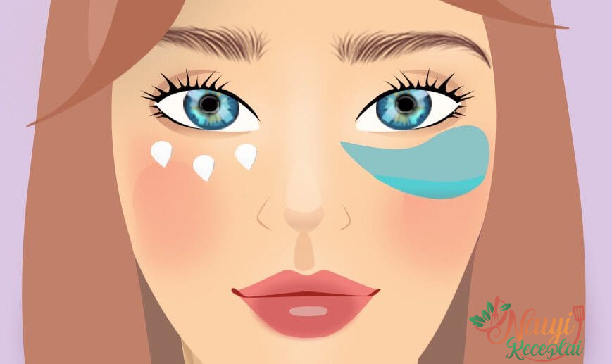 Nepamirškite drėkinti: naudokite hialurono rūgšties pagrindu sukurtus serumus ir treniruokitės porą kartų per savaitę klijuoti pleistrus po akimis. Pleistrai padės pašalinti atskaitomybę ir drėkinti odą, o po to makiažas išlieka tiesiog puikus.