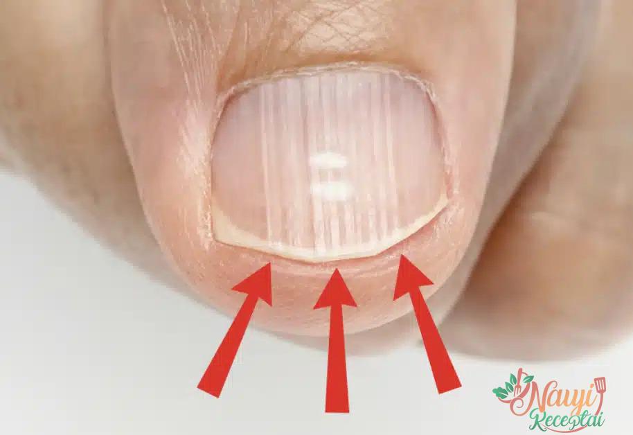 Kai kuriais atvejais vertikalios juostelės gali rodyti rimtesnes sveikatos problemas, tokias kaip prasta kraujotaka, skydliaukės liga arba autoimuninės ligos, tokios kaip reumatoidinis artritas. Jei pastebite kitų simptomų, tokių kaip slenkantys plaukai, nuovargis ar sausa oda, rekomenduojama pasikonsultuoti su specialistu.