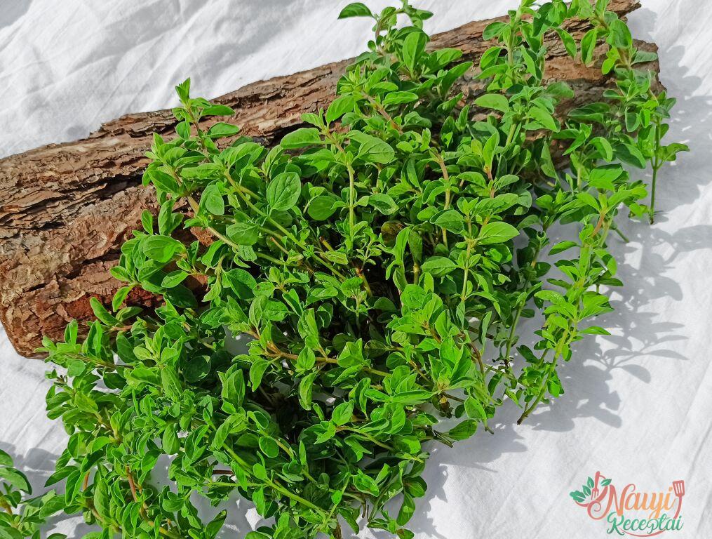 - 1 arbatinis šaukštelis džiovintų arba šviežių raudonėlio lapų.