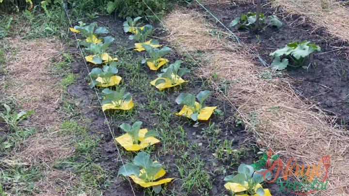 Po kopūstų daigais padėkite alyvuotą polietileno gabalėlį. Nieko daugiau nereikia daryti!