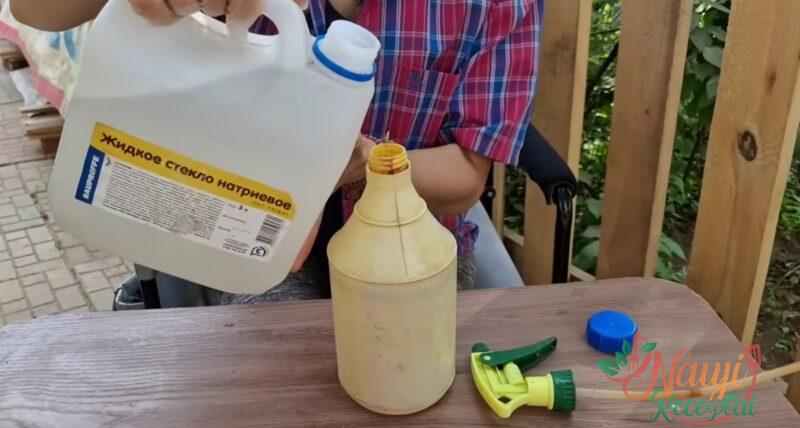 Norint paruošti produktą, kuris išgelbės augalus nuo amarų, jums reikės skysto stiklo arba silikatinių klijų, kurių reikia imti 1 valgomąjį šaukštą 1 litrui vandens.
