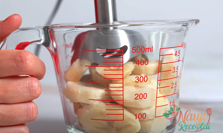 Paimkite anksčiau užšaldytą nuluptą bananą, supjaustykite gabalėliais ir sudėkite į trintuvo dubenį. Sutrinkite iki vientisos masės. Jei norite, įpilkite šiek tiek pieno arba grietinėlės, kad tekstūra būtų minkštesnė.