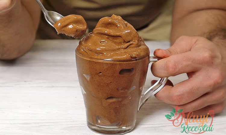 Šokoladinei versijai įberkite kakavos ir vėl išmaišykite. Patiekite gatavus ledus nedelsdami arba įdėkite į šaldiklį, jei norite tirštesnės tekstūros. Galite įdėti uogų arba citrinos žievelės.