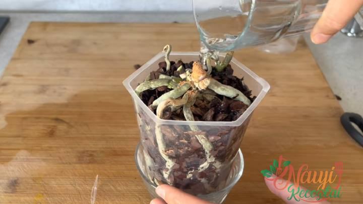 Pirmą kartą orchidėją geriau laistyti praėjus 10 dienų po genėjimo. Ateityje laistykite pagal poreikį – atkreipkite dėmesį į šaknų spalvą.