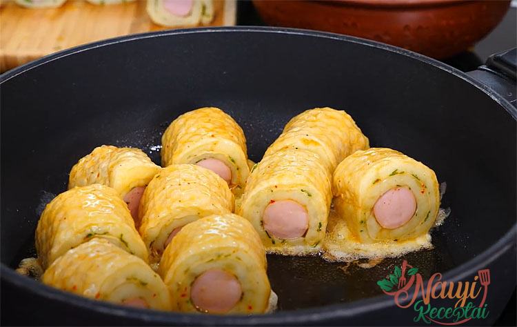 5. Patiekite karštą – tiesiai iš keptuvės. Galite papuošti šviežiomis žolelėmis arba patiekti su padažu (kečupu, česnaku, grietine ir kt.).