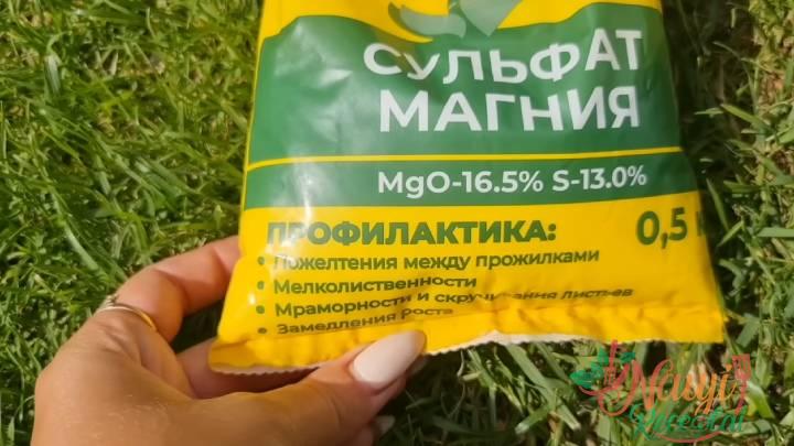 Vienam krūmui pamaitinti pakanka vienos saujos magnio sulfato. Tai yra apie 30–40 g. Specialiai matuoti nereikia.