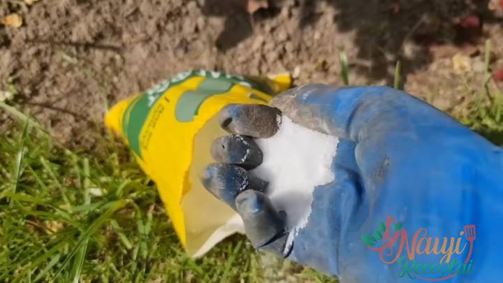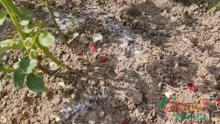 Išbarstykite aplink krūmą. Tada šiek tiek supurenkite dirvą ir palaistykite, jei lyja retai.