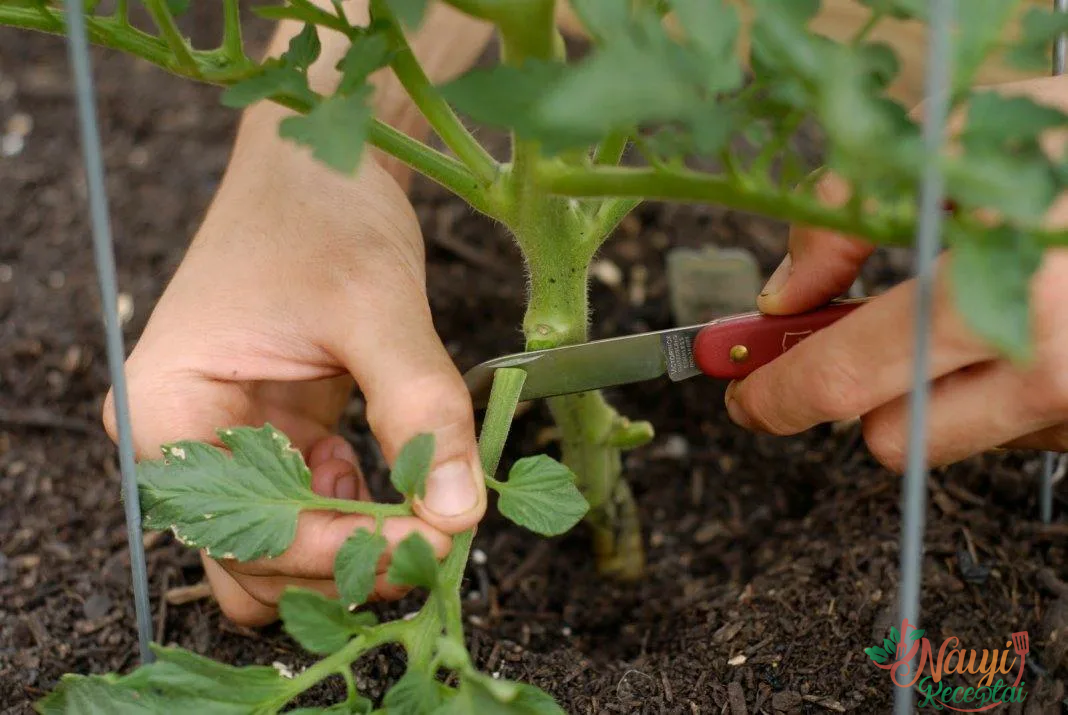 Pasodinus į žemę nuolatinėje vietoje, po 10 dienų nuplėšiame apatinius lapus, kad išvengtume vėlyvojo puvinio ir sumažintume sąlytį su bakterijomis. Lapai neturėtų būti ant žemės, tai yra pagrindinė krūmo formavimosi taisyklė, nes grybai, vėlyvojo puvinio šaltiniai, gyvena žemėje.