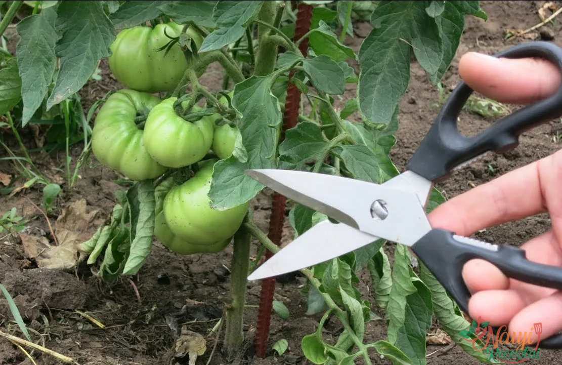 Kol vaisiai nesumezgė, visus lapus virš žiedyno reikia palikti nepažeistus. Kai tik pradeda pildytis pirmasis šepetys ir susiformuoja pomidorai, pašaliname po juo esančius lapus. Pašalindami visus lapus po susiformavusiu ir pradėjusiu pildytis šepečiu, nepakenksime augalui.