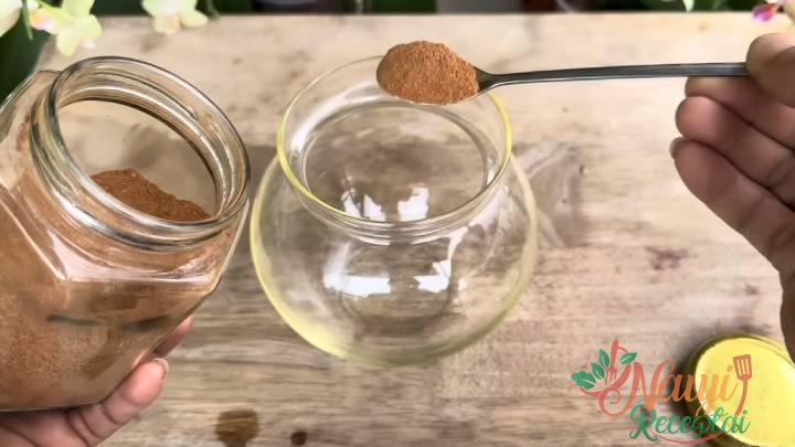 Kai cinamono užpilas atvės, paimkite 2 valgomuosius šaukštus bet kokių baltųjų ryžių ir užpilkite 1 litru kambario temperatūros vandens į atskirą indą. Kruopščiai nuplaukite ryžius šiame vandenyje. Nukoškite likusius cinamono užpilo miltelius per šluostę. Supilkite į jį ryžių vandenį (išimkite pačius ryžius – juos galima valgyti).