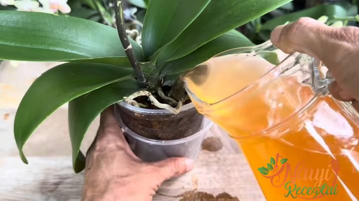 Maitinkite savo grožį 2 kartus per mėnesį (kas 15 dienų). Esame tikri, kad jūsų orchidėjai jis labai patiks! Tai ir prevencinė priemonė nuo puvinio, ir natūrali trąša. šiuo natūraliu užpilu