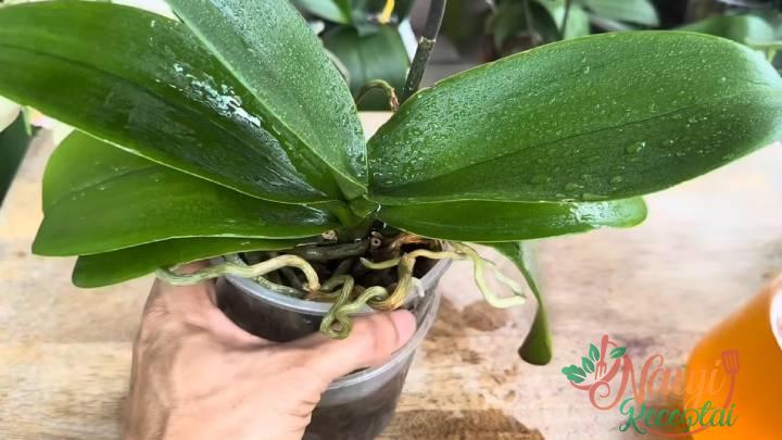 Gausiai užpilkite orchidėją šiuo cinamono ir ryžių užpilu, kad ištekėtų drėgmė (pirmiausia įdėkite į didesnį indą). Palaikykite pusvalandį.
