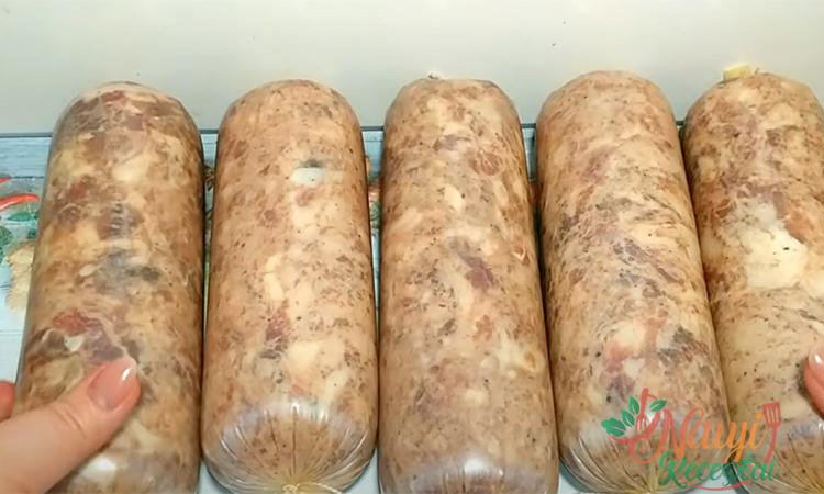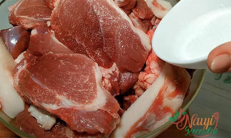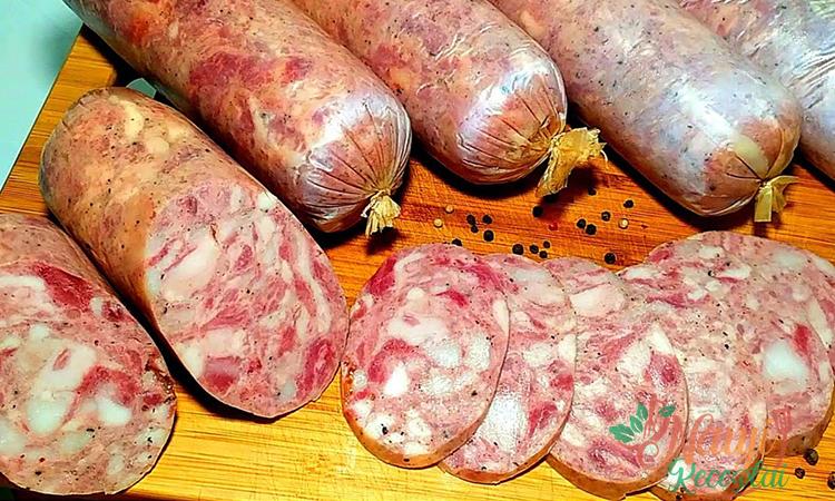 Ingredientai: 1 kilogramas mėsos (imkite bet kokią pagal savo skonį), 12 gramų nitrito druskos ir įprastos druskos, gramas juodųjų pipirų, gramas česnako, pusė gramo kardamono, gramas prieskonių mišinio.