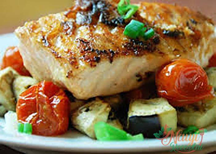 Žuvis su daržovėmis orkaitėje. Žingsnis po žingsnio receptas