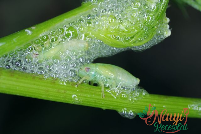 Spjaudyklę lengva atpažinti iš baltų šlapių putų masių ant lapų, lapkočių ir stiebų. Mažytės žalios nimfos gamina šią seilių dangą, kad apsisaugotų nuo plėšrūnų ir išdžiūvimo.
