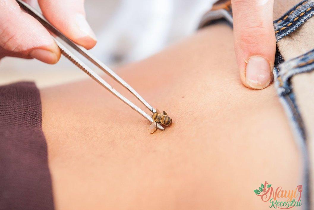 Jei įgėlė bitė, pirmiausia būtina kuo greičiau pašalinti geluonį. Svarbu nenaudoti pirštų ar pinceto, nes tai gali išspausti daugiau nuodų į kūną. Geriau švelniai nugramdykite geluonį banko kortele ar peilio briauna. Kuo greičiau tai padarysite – tuo mažesnė bus reakcija.