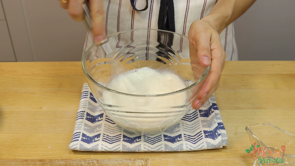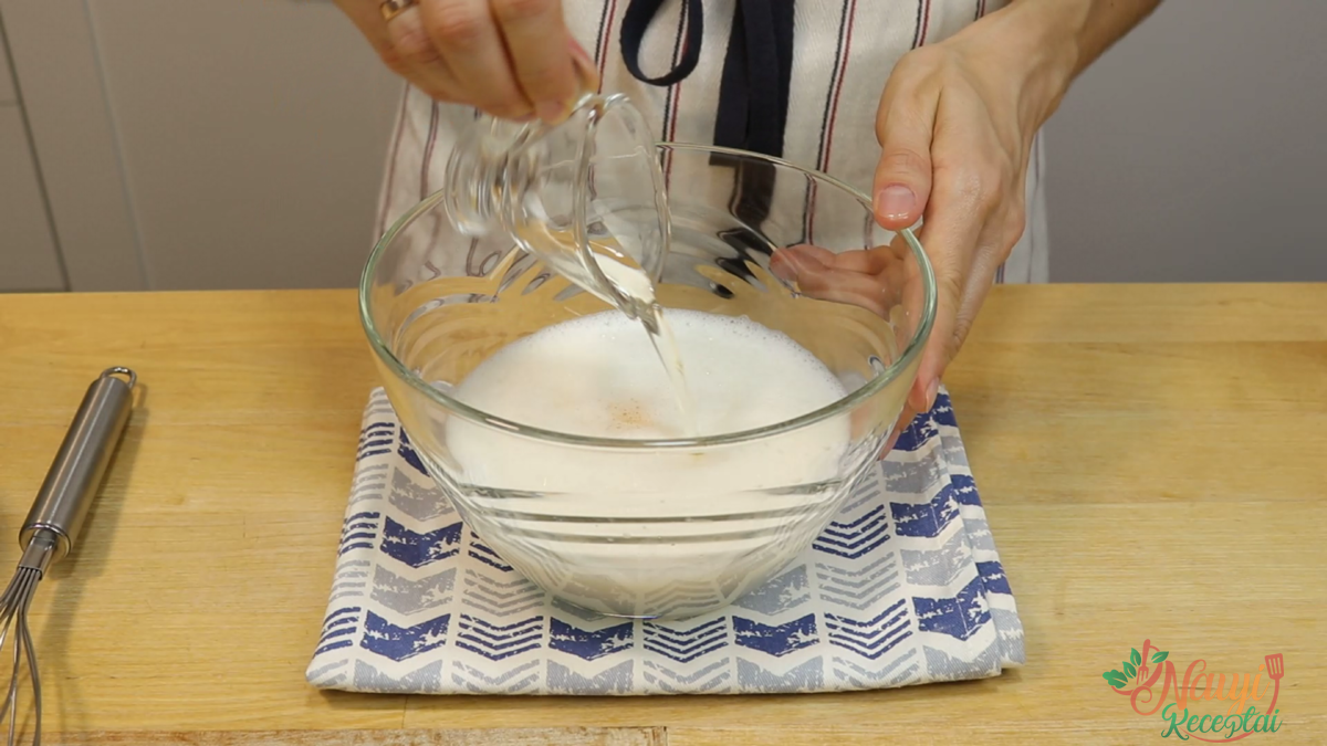 Išmaišau ir palieku 10 minučių, kad mielės atgytų.