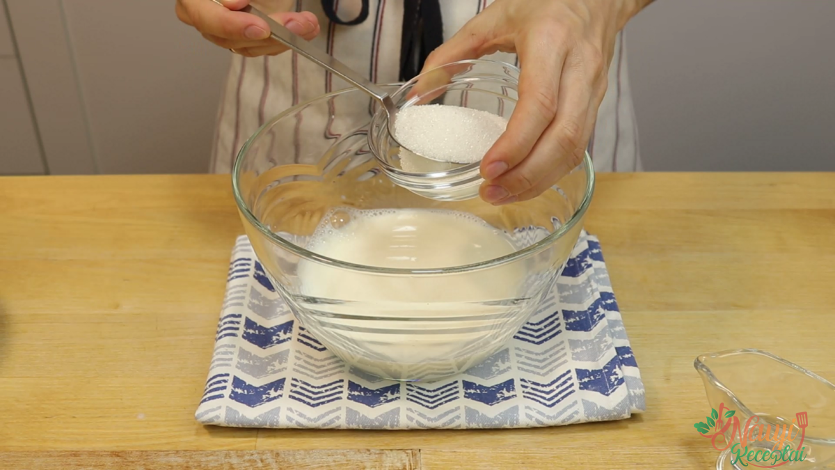 Mieles ir 1 valg. šaukštą cukraus ištirpinu šiltame piene.