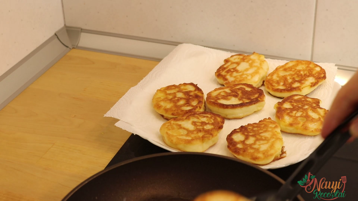 Aš juos sudėjau ant popierinio rankšluosčio, kad sugertų aliejaus perteklių.