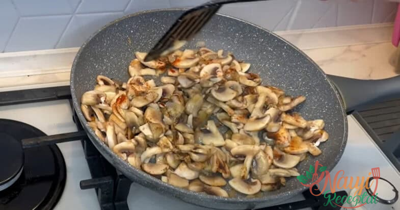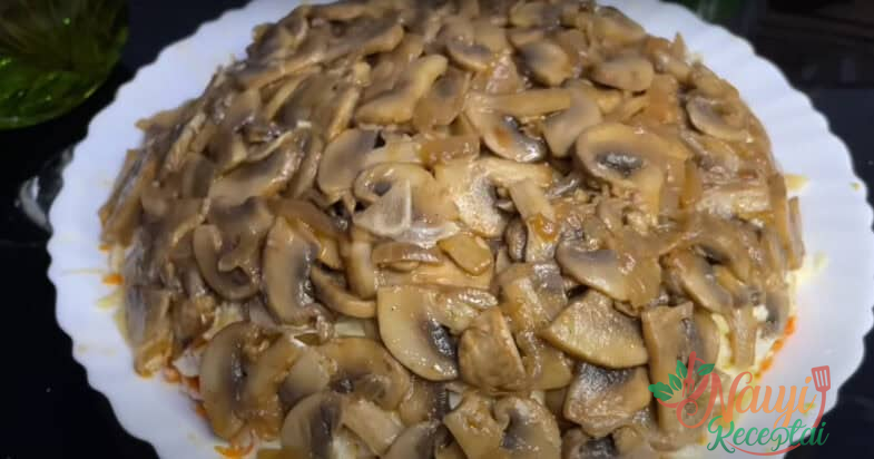 Ant paskutinio sluoksnio uždėjau grybus, jie skanūs!