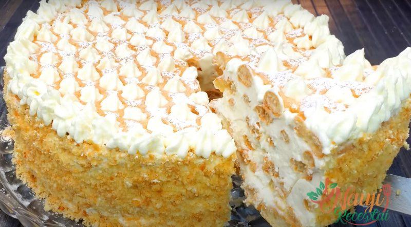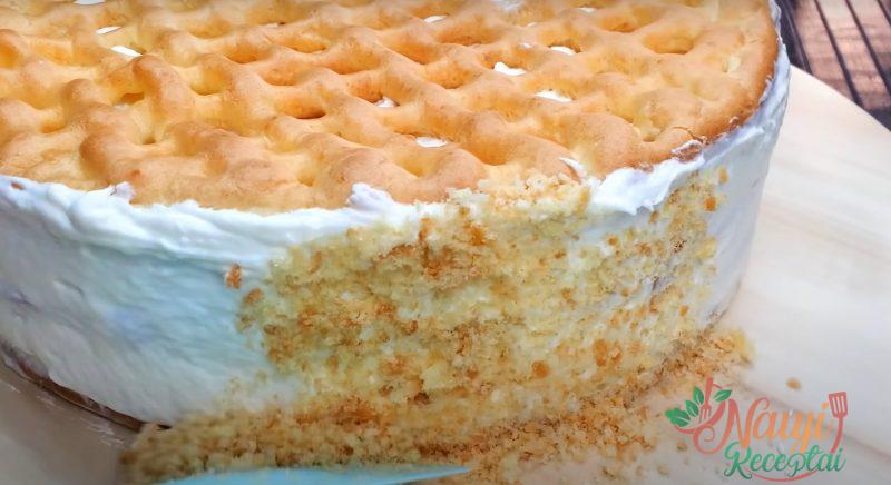Rezultatas – neįprastas pyragas su dideliu kiekiu saldžios grietinėlės.