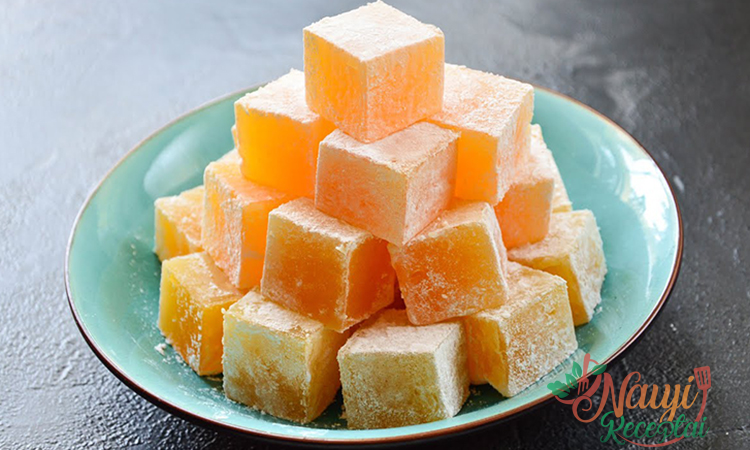 Garsųjį turkišką skanėstą galima pasigaminti namuose, be dažiklių ir kvapiųjų medžiagų. Pakanka paimti natūralių apelsinų sulčių, krakmolo ir cukraus, kad gautumėte elastingą, šiek tiek klampų desertą su sodriu citrusinių vaisių skoniu.