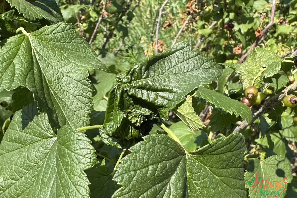 Parazitas pažeidžia ūglius, jį galima atpažinti iš susisukusių lapų.
