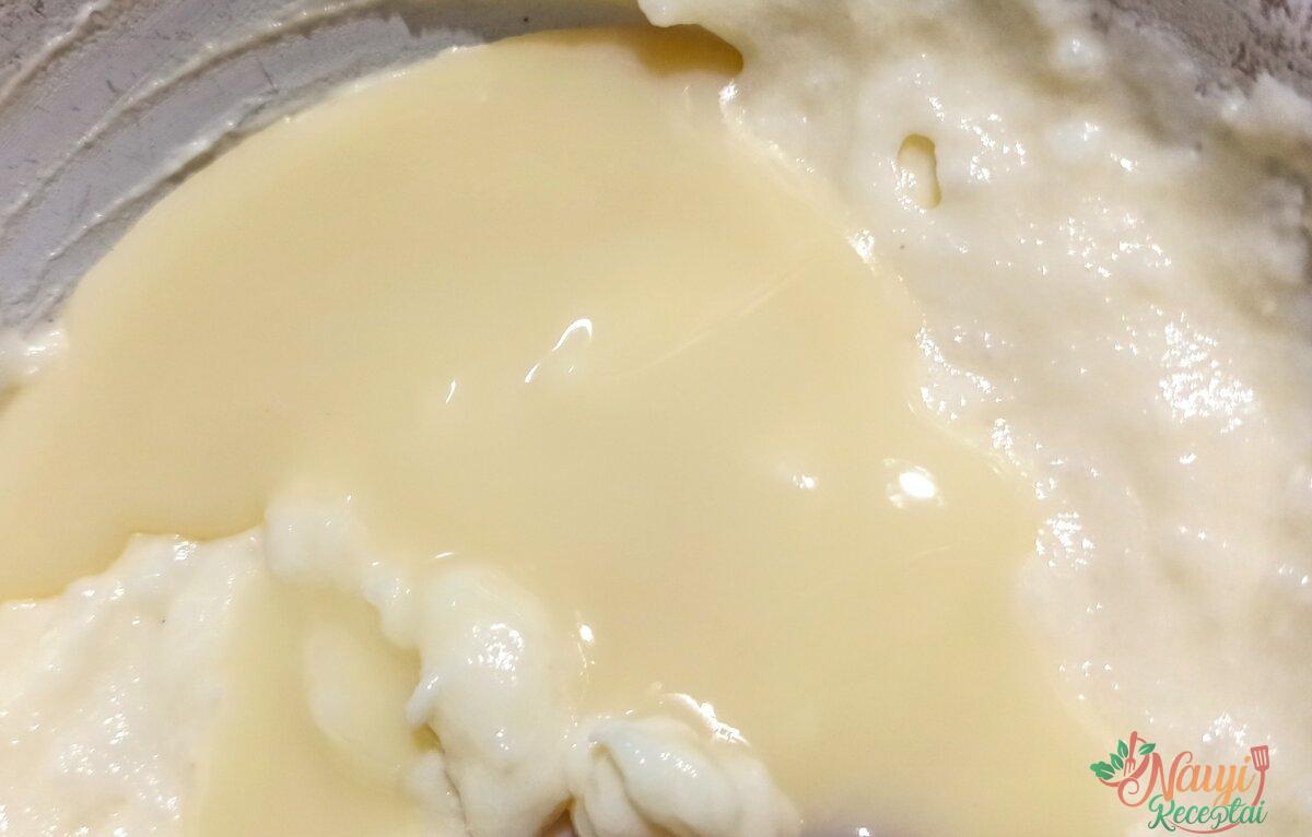 7. Sumaišykite su minkštu sviestu ir kondensuotu pienu.