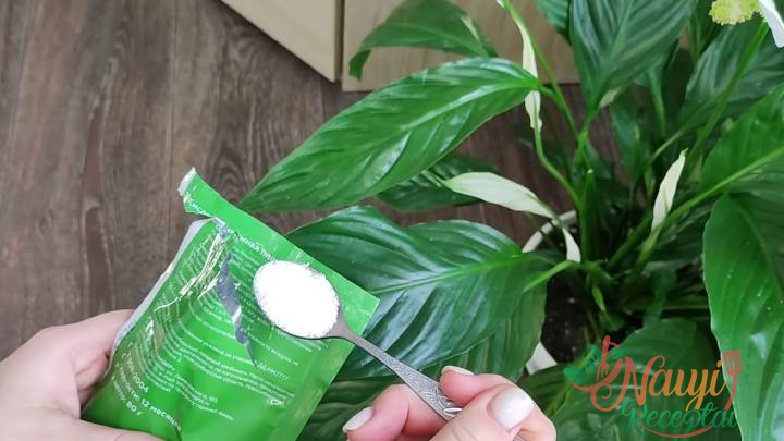 apie 300–400 ml tokių trąšų  . Dirva šiek tiek parūgštės, o spathiphyllum jausis daug geriau!